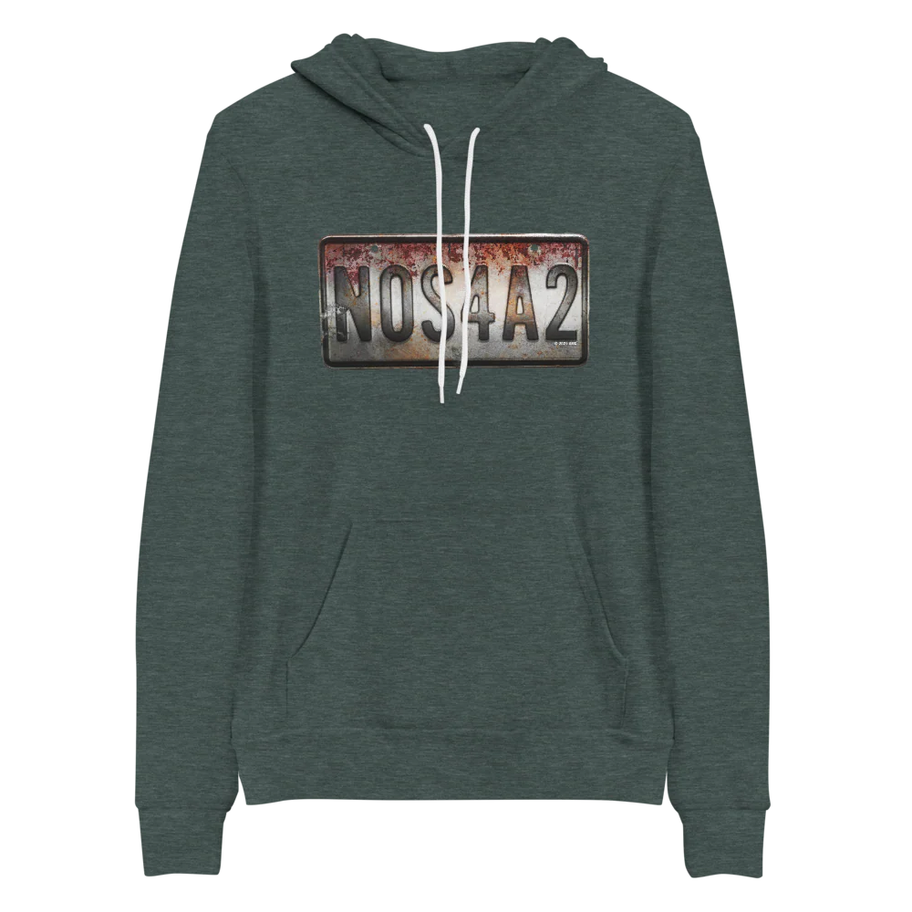 Featuring Charlie Manx's 1938 Rolls-Royce Wraith from the AMC series, the NOS4A2 License Plate Adult Fleece Hooded Sweatshirt is available in several different colors. Fans will love this wickedly warm wardrobe necessity.